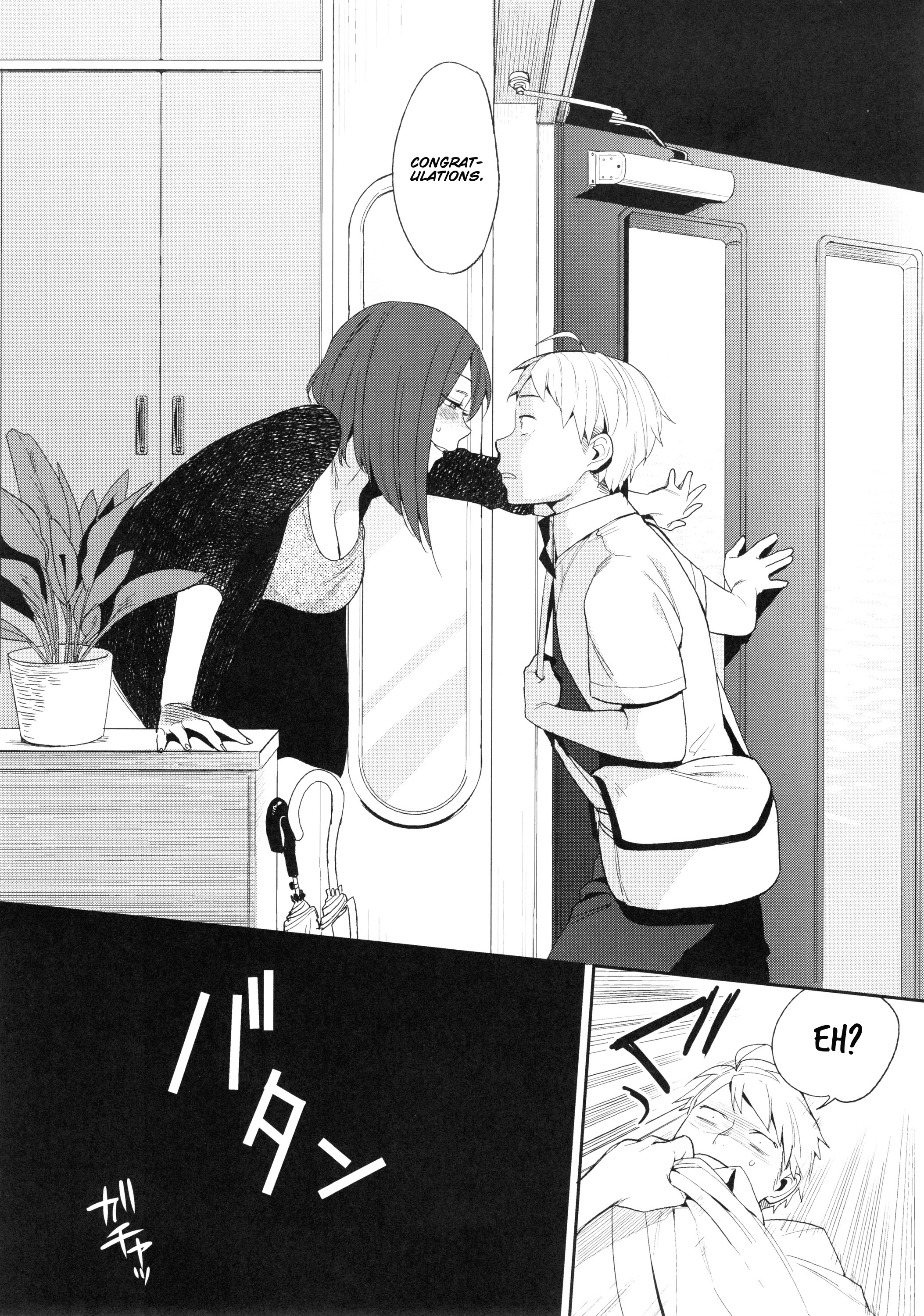 >But what you could have never anticipated was how he could have grown so bold. He corners you against the wall with the frozen stare of a hunter. You cannot look away as though your eyes be joined together by some invisible string. He needs no words to communicate his intent and you realize that your idle wondering was no mere game. You have to admit to yourself that he's handsome, and that maybe if you weren't siblings... but neither your heart nor body are ready, and you're not sure what to do. But it no longer matters what you would do; the decision has been made for you already. The only thing you can say to pierce the tense calm before the storm is "Please be gentle..." before the hunter turns to feast upon his prey.