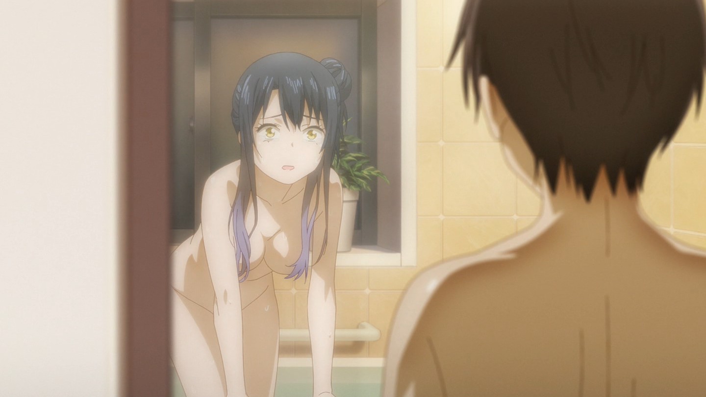 wtf, is that expression? she looks like she just saw a ghost, she's not even trying to steal a glance at er otouto's otouto or focused on covering up.