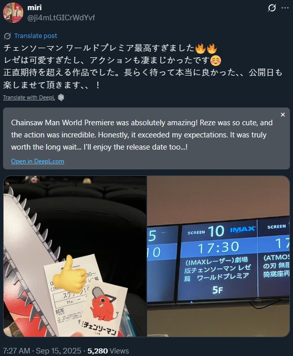 >[GOOD NEWS] Chainsaw Man The Movie: Reze Arc set to have a global opening weekend of $1,000,000,000,000