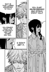 >Start of latest arc where he tells Yoru about Blood Devil being someone he had fun with, and considering AsaYoru a friend