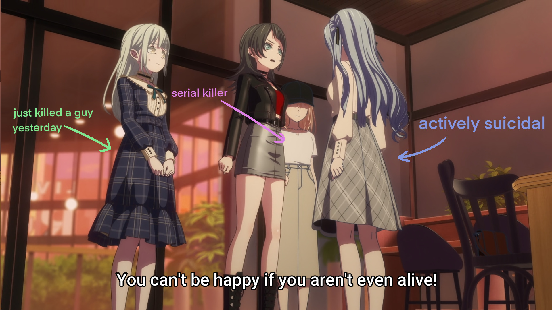Yeah, and that's the point I tried to make. They have to develop, get along and actually become a team that cares about each other, but they shouldn't become perfect, they've got to keep their flaws, just that they know how to deal with their own stuff because they care about each other, but they still need to be quite flawed because that's what makes Ave Mujica special.
