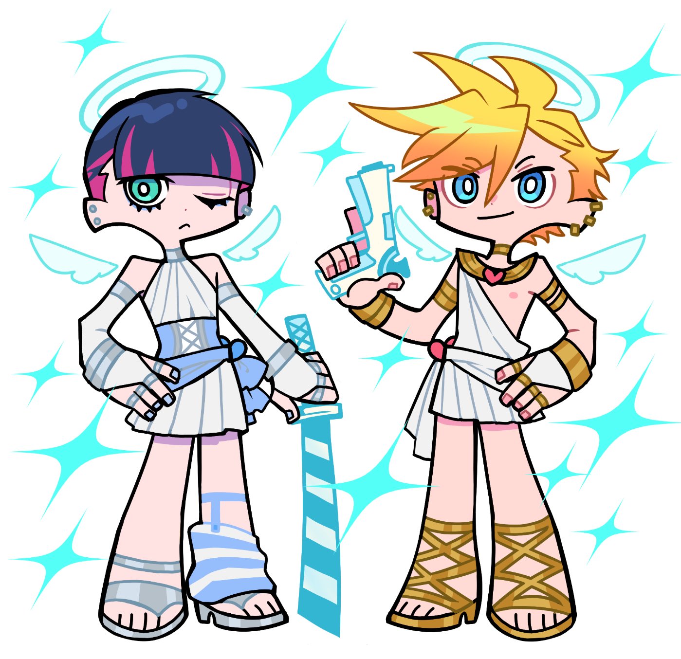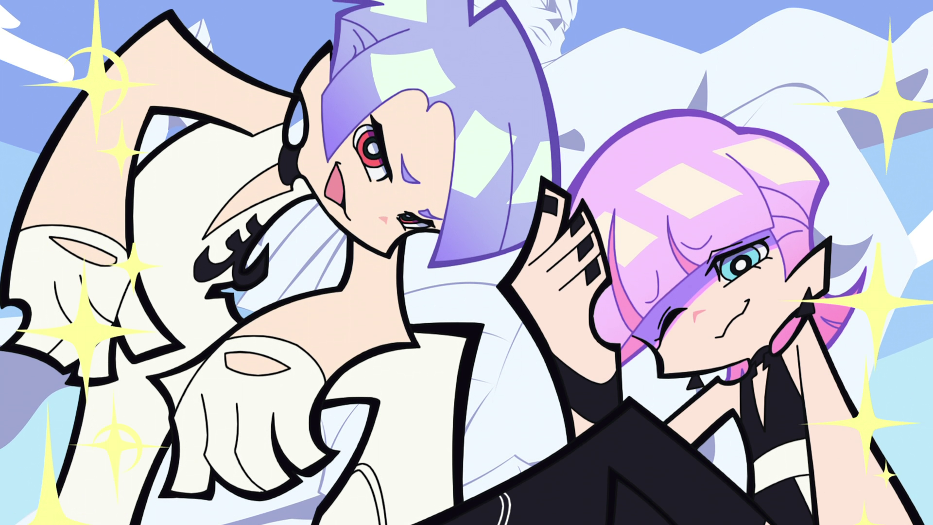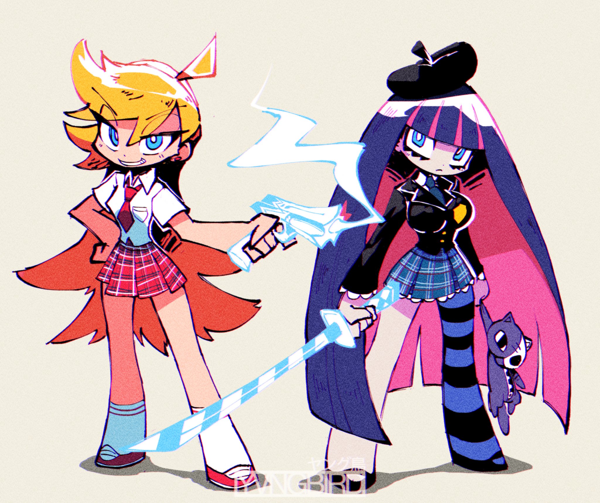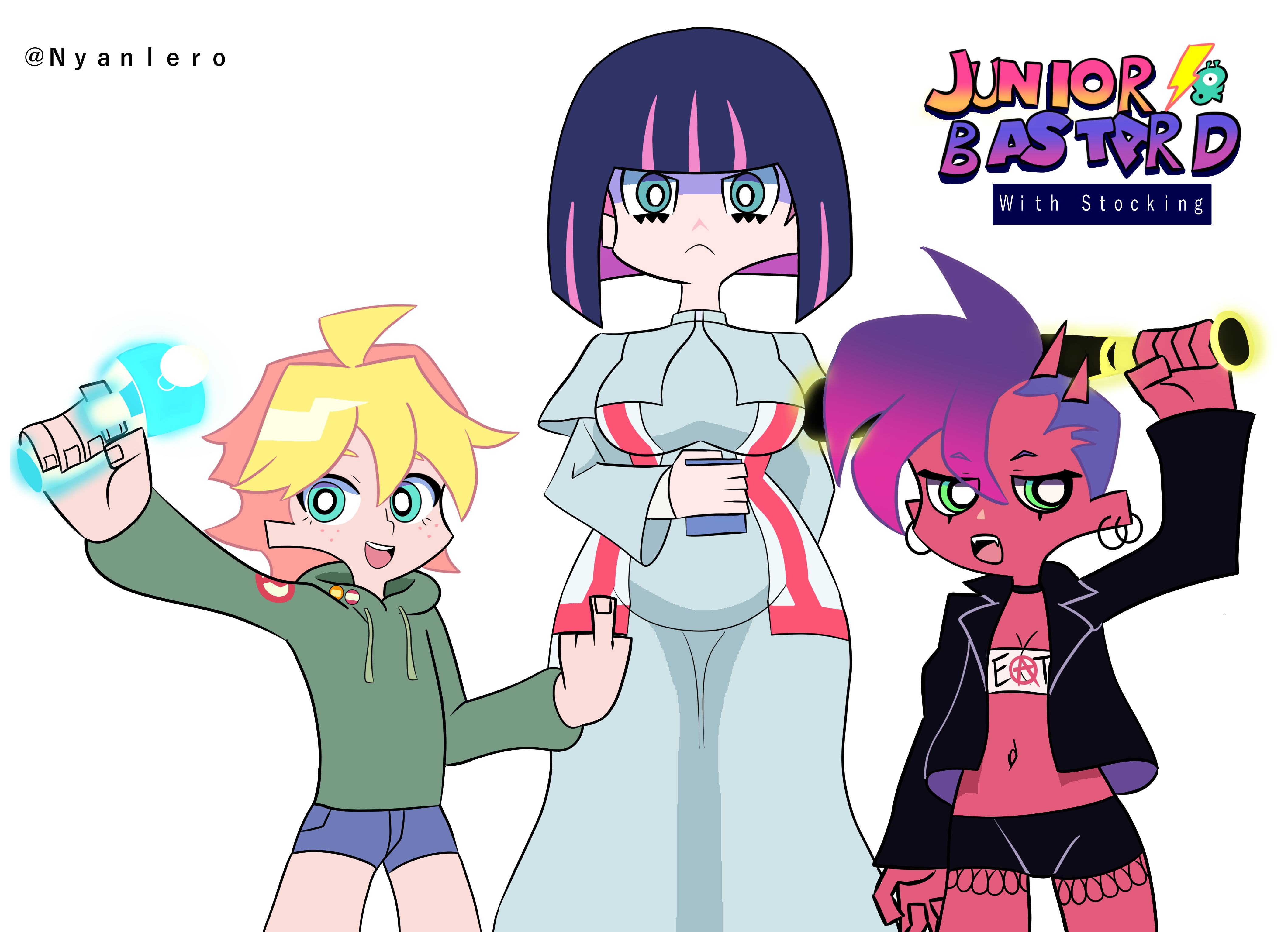 As for the overall relationship, they fuck with each other to piss the other off, and it pisses them off that they found the other attractive for an angel/demon, so the shenanigans escalate because of that. They will fuck themselves over if it means getting the other one pissed. Kneesocks and Polyester are basically the voice of reason. For once, Panty and Stocking are the ones providing commentary.