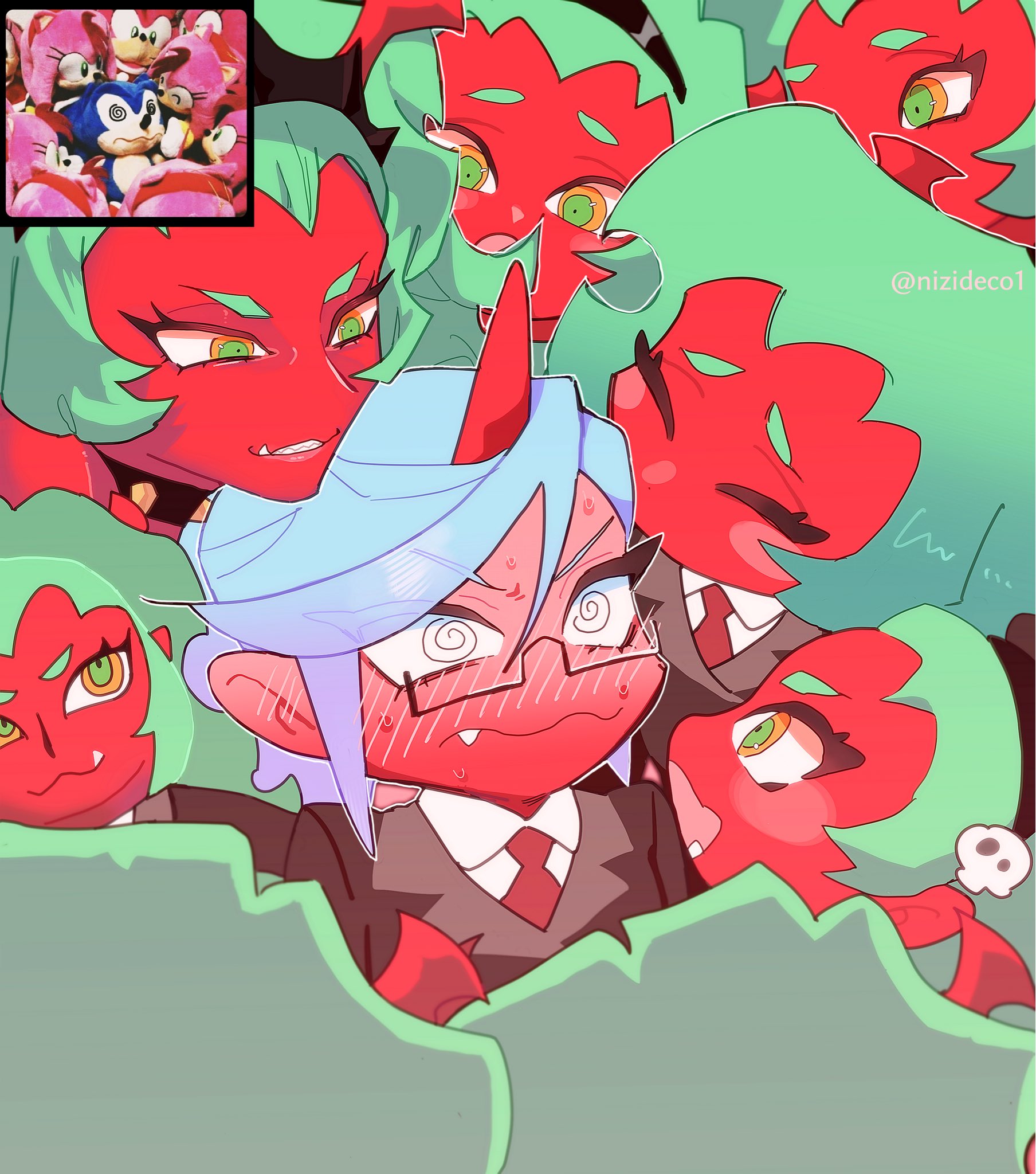 I know it might sound like cope but I'm still convinced the red eyebrows meant something, like him getting angry. At first I though they were shaped like eyebrows but actually horns as a sort of red herring.
