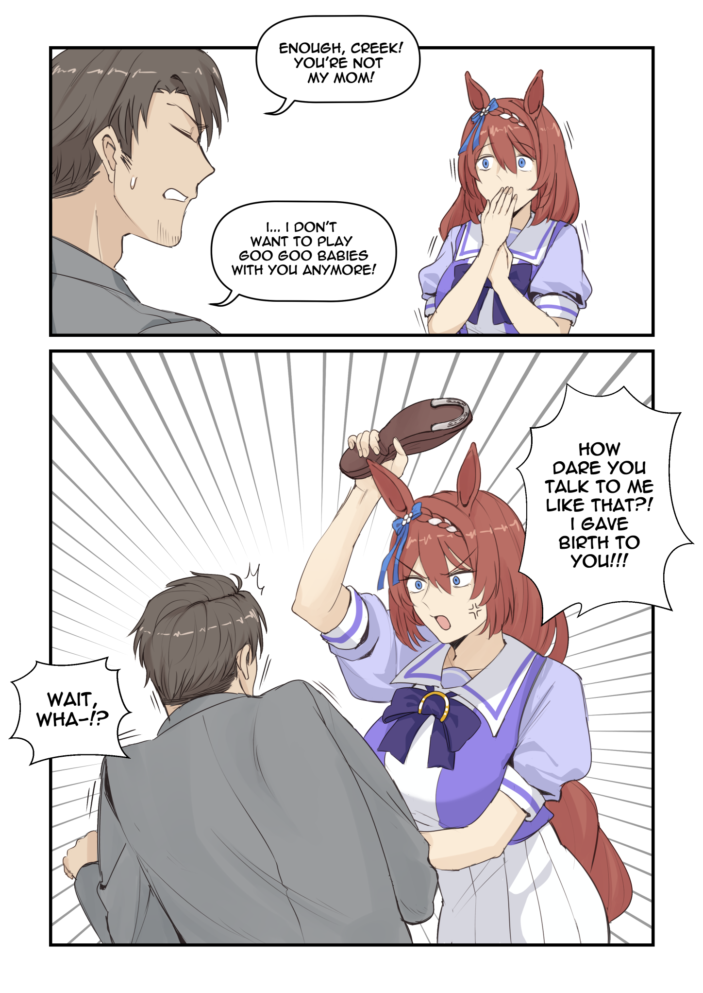 you plead for her to stop but she's an uma possessed