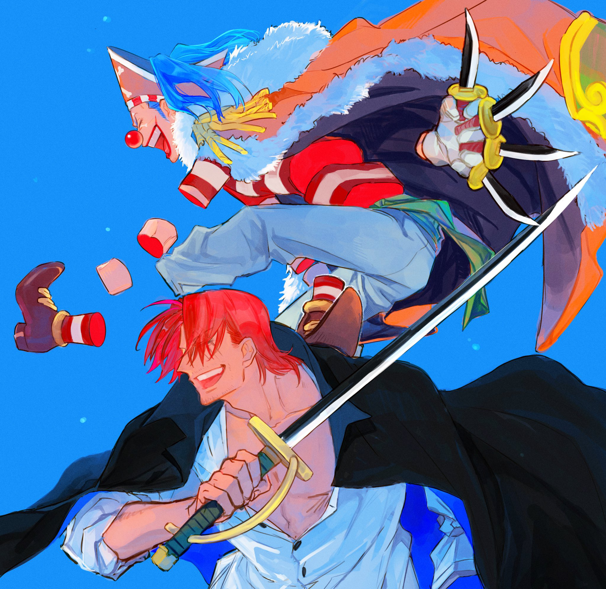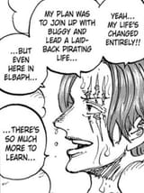 Buggy's mad at Shanks for accidentally making him swallow the Bara Bara fruit and seethes at him to this day but Shanks still likes Buggy to the point where he offered him a position on his crew when the Roger Pirates split up.