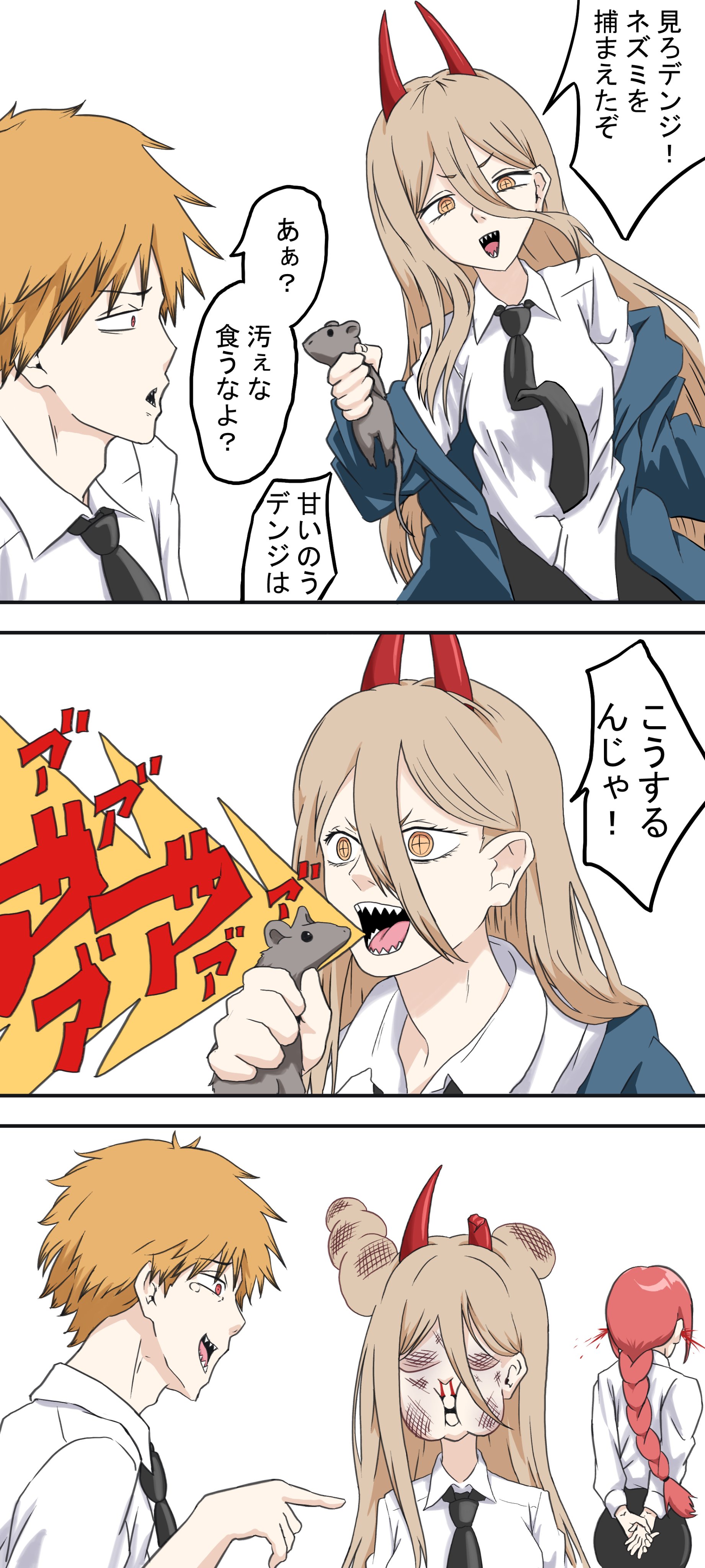 In Denji's case he was a victim acting in self-defense.
