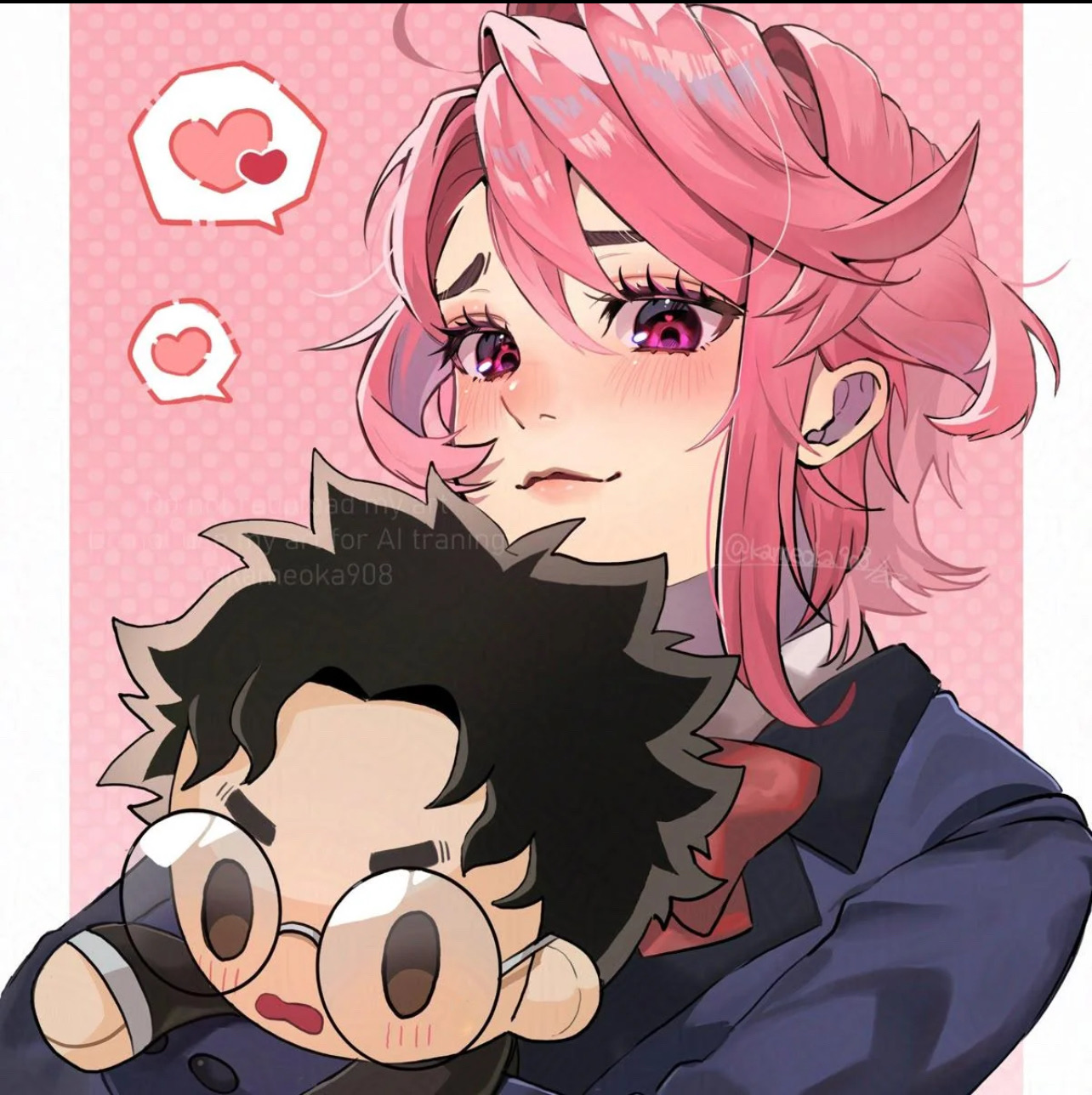 Doesn't matter to her how ridiculous her beloved looks, she's just happy showering him with affection.