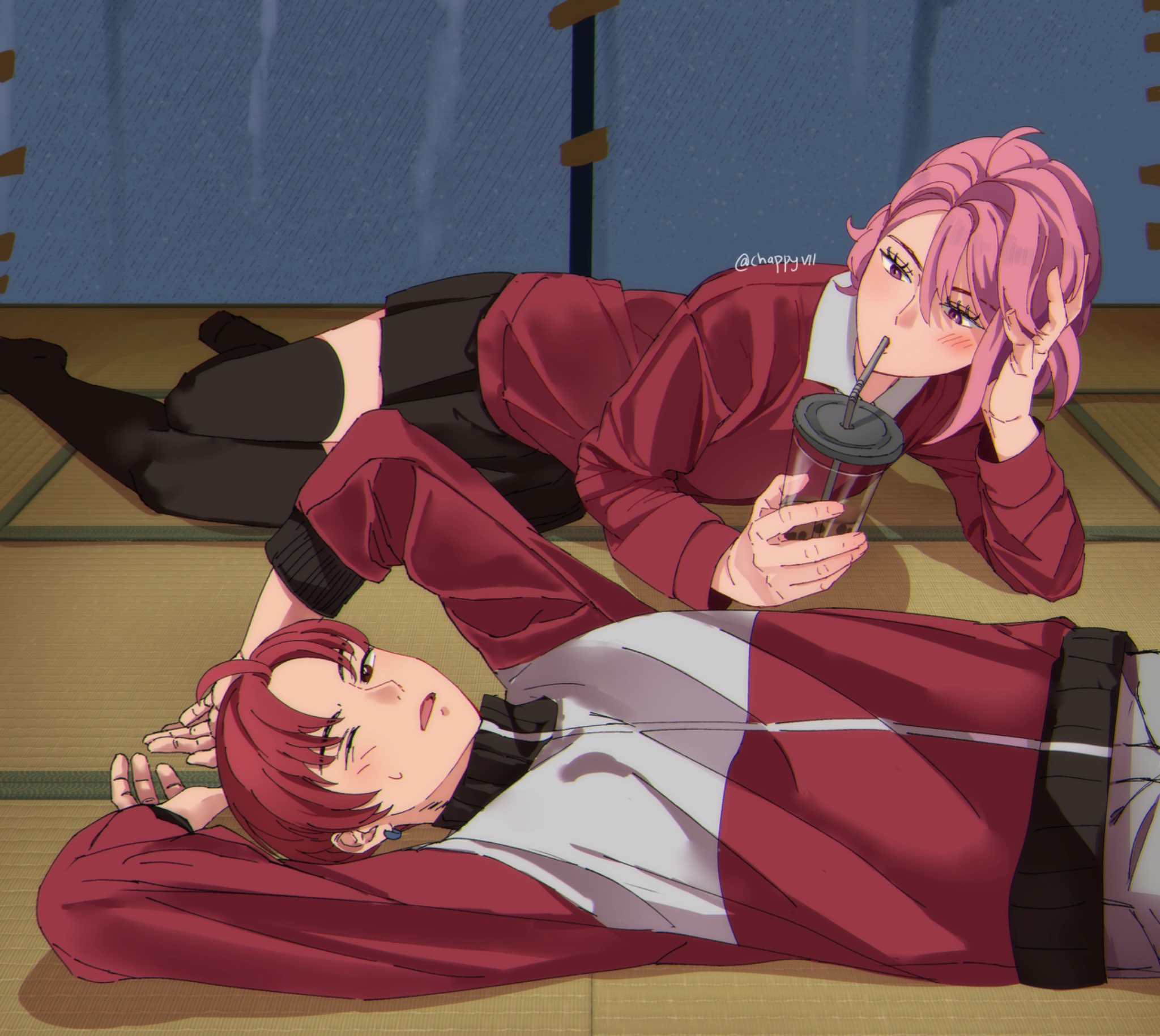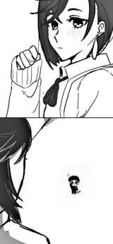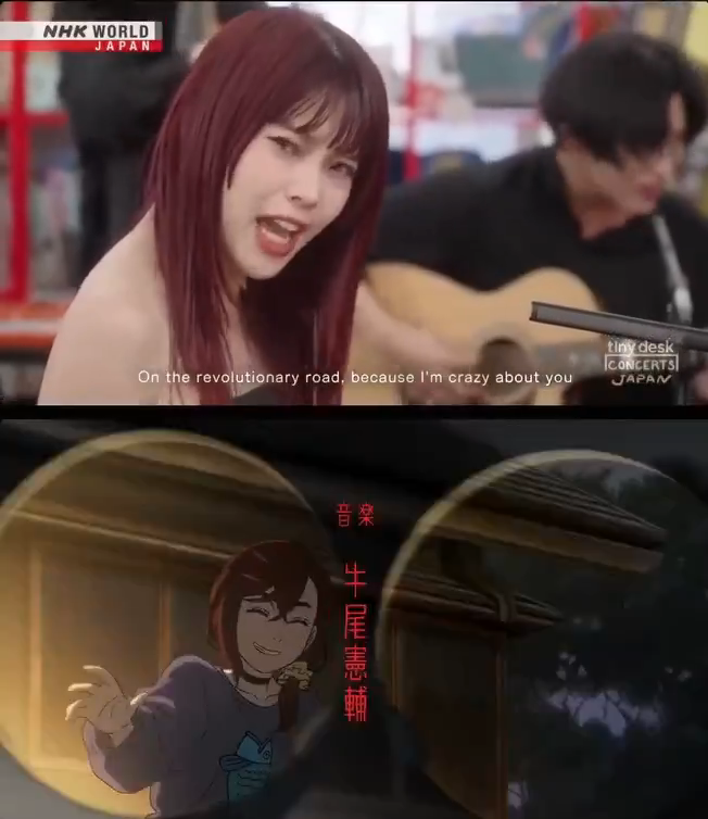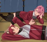 there should be a version of that tv switching gif from eva with okarun and momo