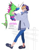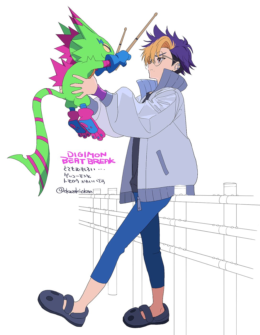 Big lizard, bigger lizard guy with drums, Tsukuyomi