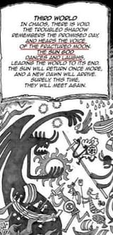 I feel like it's talking about the world itself in the first world the red line was created and in the second world the grand line was created thus separating the entire world but in the third one they will both be destroyed reuniting all seas