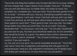 You know what I want in life and I don't expect you to want to be a part of that. If you are interested in other people, I will support you and always have love. But I don't want to share you with anyone or antything else.