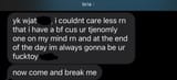 good. I'm glad. modern relationships. it is what it is. she's hot. how did you find out?