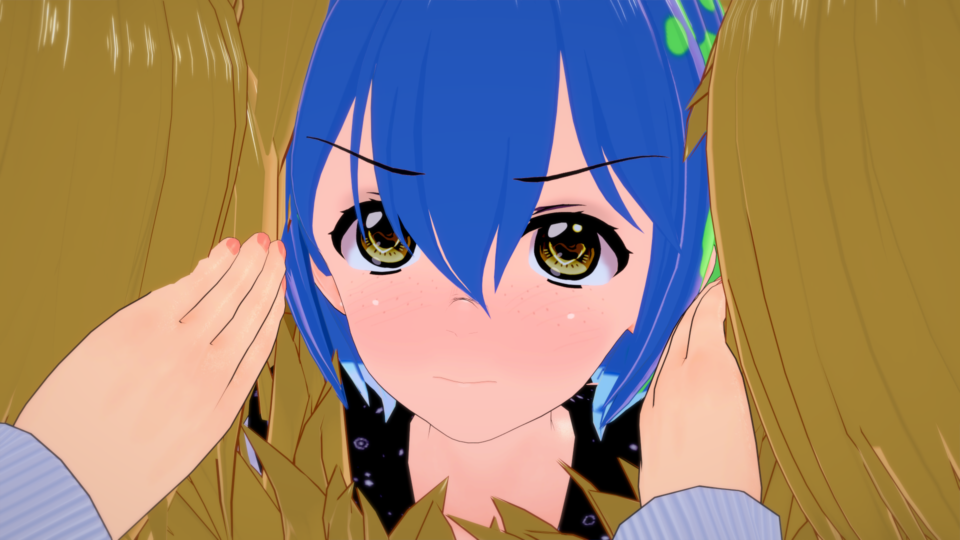 I dunno. Maybe she's just angry to be found. It's a reference to an anime clip I think.
