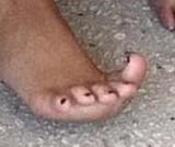Black toes crunching to show her wrinkles