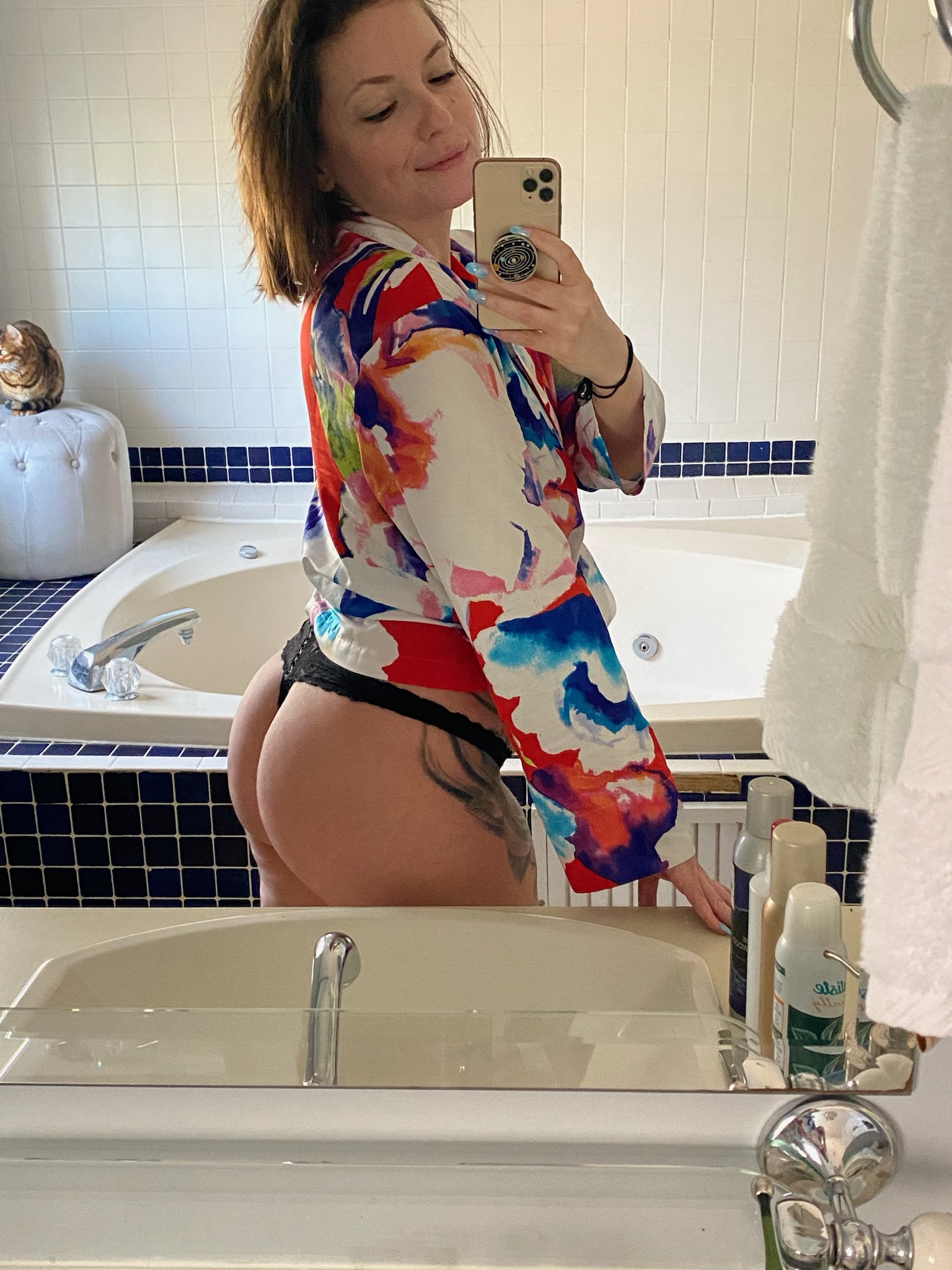 She lets me takie pics and she knows I send them to some guys. I no longer live in this place so I don't want the place to be recognizable.