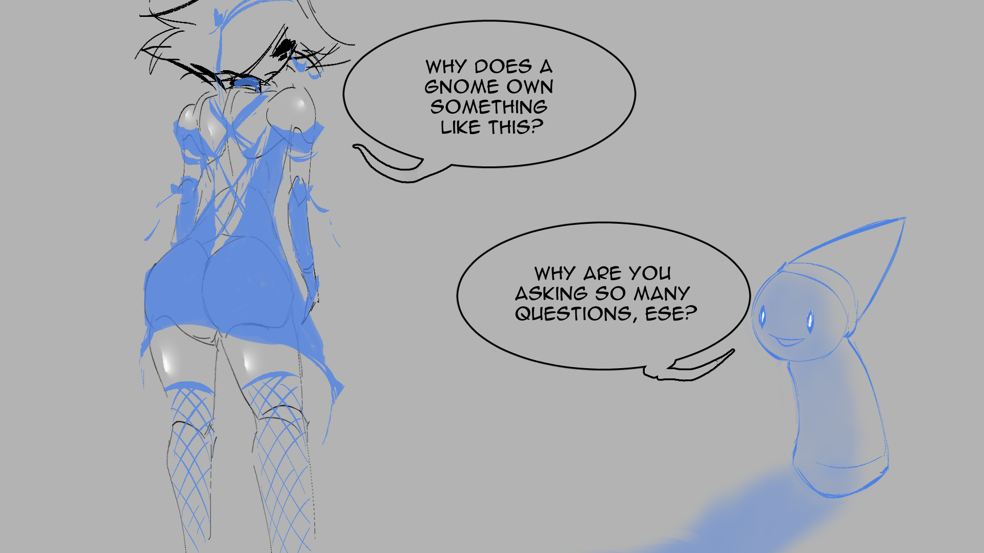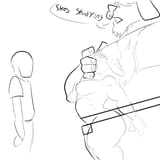 Requesting Chuck and Nerd Trinket doing some stealth sex, by hiding the gobbo/orc in his pants. Maybe someone asking where trinket has gone
