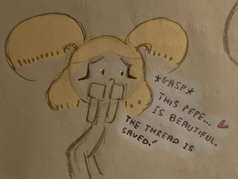 I'm going to go make some food and then try drawing Trinket because I think she's my favorite Drawthread character.