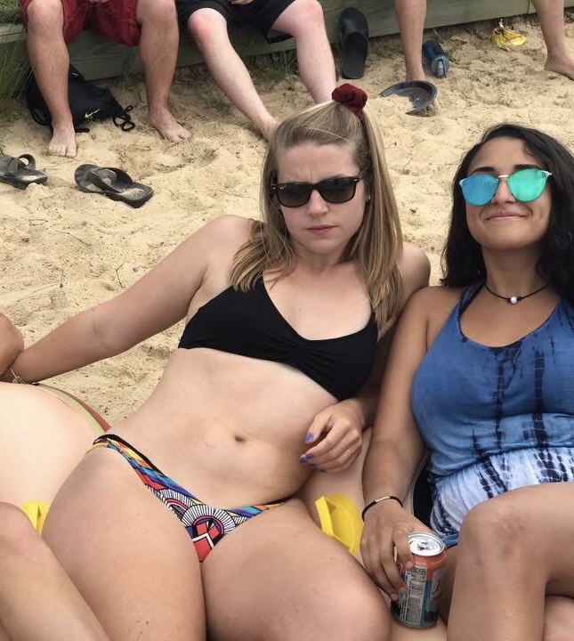 She went on a trip to Cali after graduation with some friends and somehow ended up alone at a beach house some college guys from ASU were staying at. Went to a bedroom with one of them and eventually started fucking. As she was getting fucked doggy another guy came in a put his dick in her mouth and she didn't know what to do so rolled with it and ended up fucking them both. They fingered her ass too and both came in her mouth.