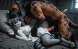 masterpiece, best quality, newest, absurdres, highres, nsfw, 1girl, dark background, (caravaggism:1.2), (noir shadows:1.1), ArsMJStyle, Colored pencil hyperdetailed realism, traditional media, colored pencil \(medium\), (hatching \(texture\):1.1), ([cinematic composition | romantic lighting, low light | film grain]:1.2) BREAK , erotic pose, (toned:0.8), 1girl, laura kinney, green eyes, black hair, long hair, choker, thick lips, blush, comfy, pantsu-ripper, deep skin, solo, depth of field, nude , deep skin, solo, depth of field,, glistening skin, indoors, apartment, living room, large windows, new york city, candid , , aroused, sound effects, rain on window, saliva, , blush, erect nipples, moaning, female orgasm, quivering, trembling, detailed vagina, wet pussy, BREAK, 1girl/1boy, Ash Ketchum, Laura Kinney, Ash and Laura Kinney having sex on the bed. He is spooning her, grabbing her breast, and sucking her nipple, shota, sex, spooning, vaginal, huge penis, closed eyes, nude,, motion lines, from above, ahegao,