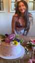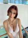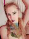 "her top gets melted off, her sweaty body and reviewing black x pasties on her top anterior and white lace gee string. A woman's hand appears from the side and rubs a sticky, whiteish very translucent fluid with a slightly smooth and lumpy texture on her chest giving her a deep tissue massage."
