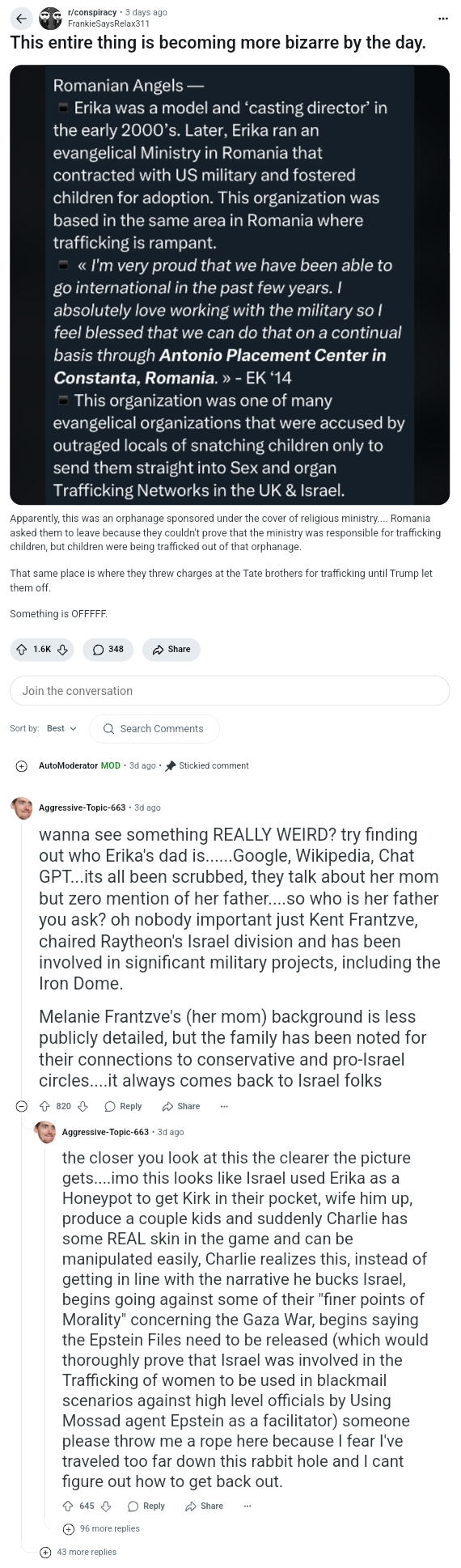 Personally I think that someone brought proof of him cheating or possibly a gay past to bring her on board with killing him, so that she's a widow instead of a divorcee. That way the biggest right wing group for college kids elects her as the new head and the only rule they have is not to mention the Epstein list.