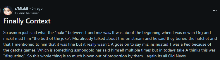 they really thought the nukes were about a tectone joke, when in reality tectone and asmon only mentioned miz because they talked with emi and she finally was ready to spill the tea