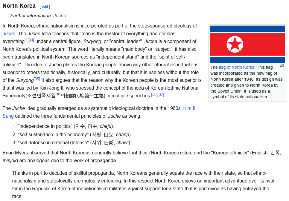 North Korea’s identity is probably based on their race and ethnicity such is the case sometimes with national socialism