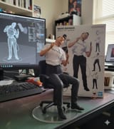 His wheelchair is right around the corner.
