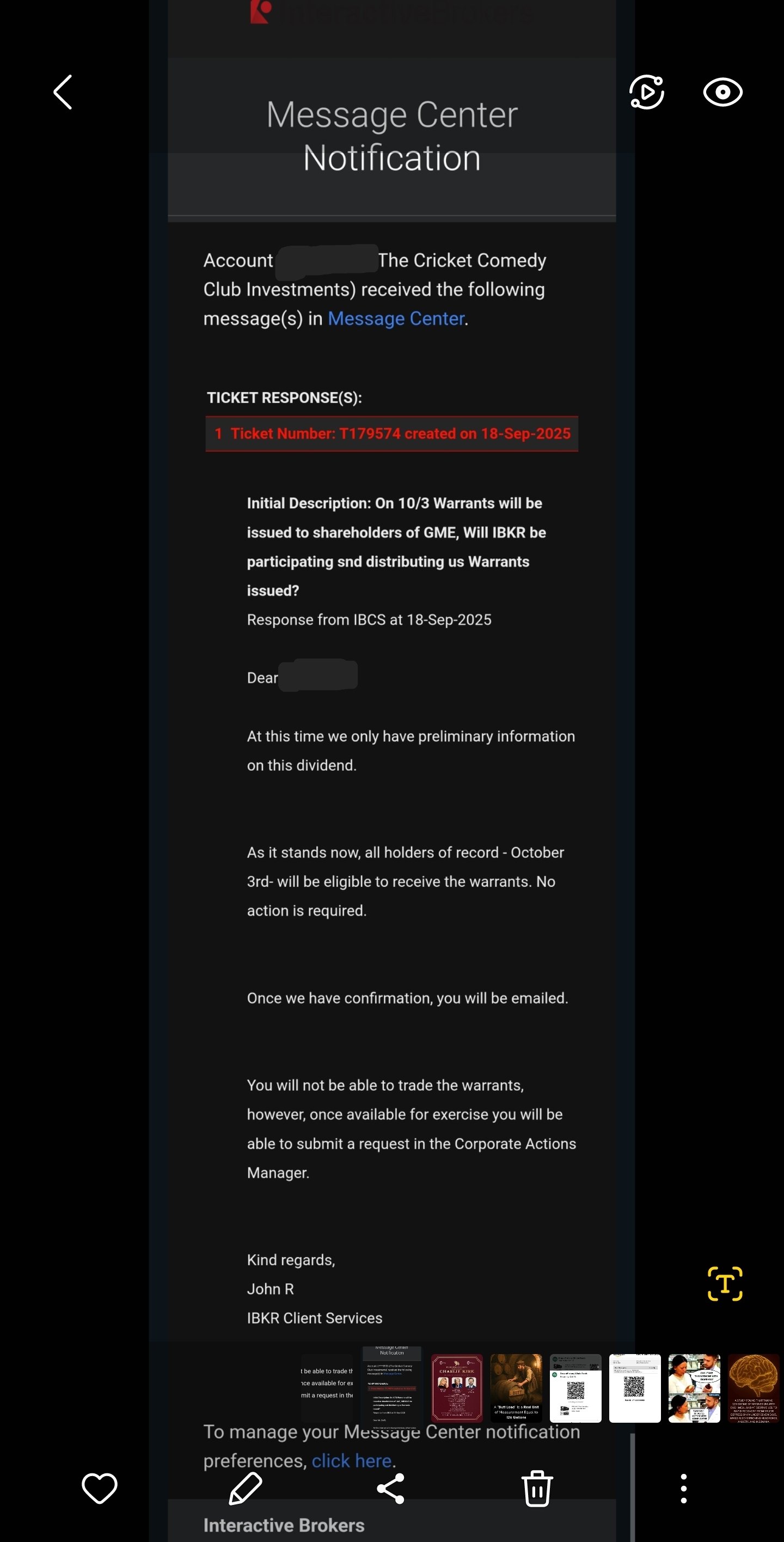 >Check your broker and clearing house to ensure you're not rugpulled