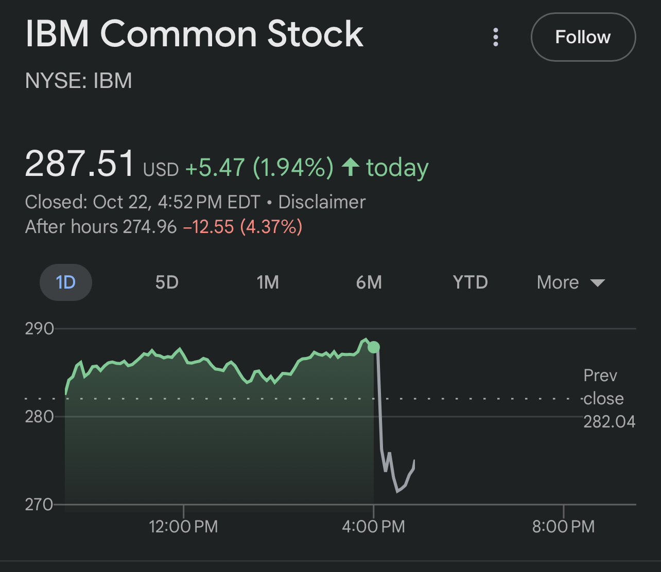 It's down 5% since close. It hasn't really gone up much since the end of the call.