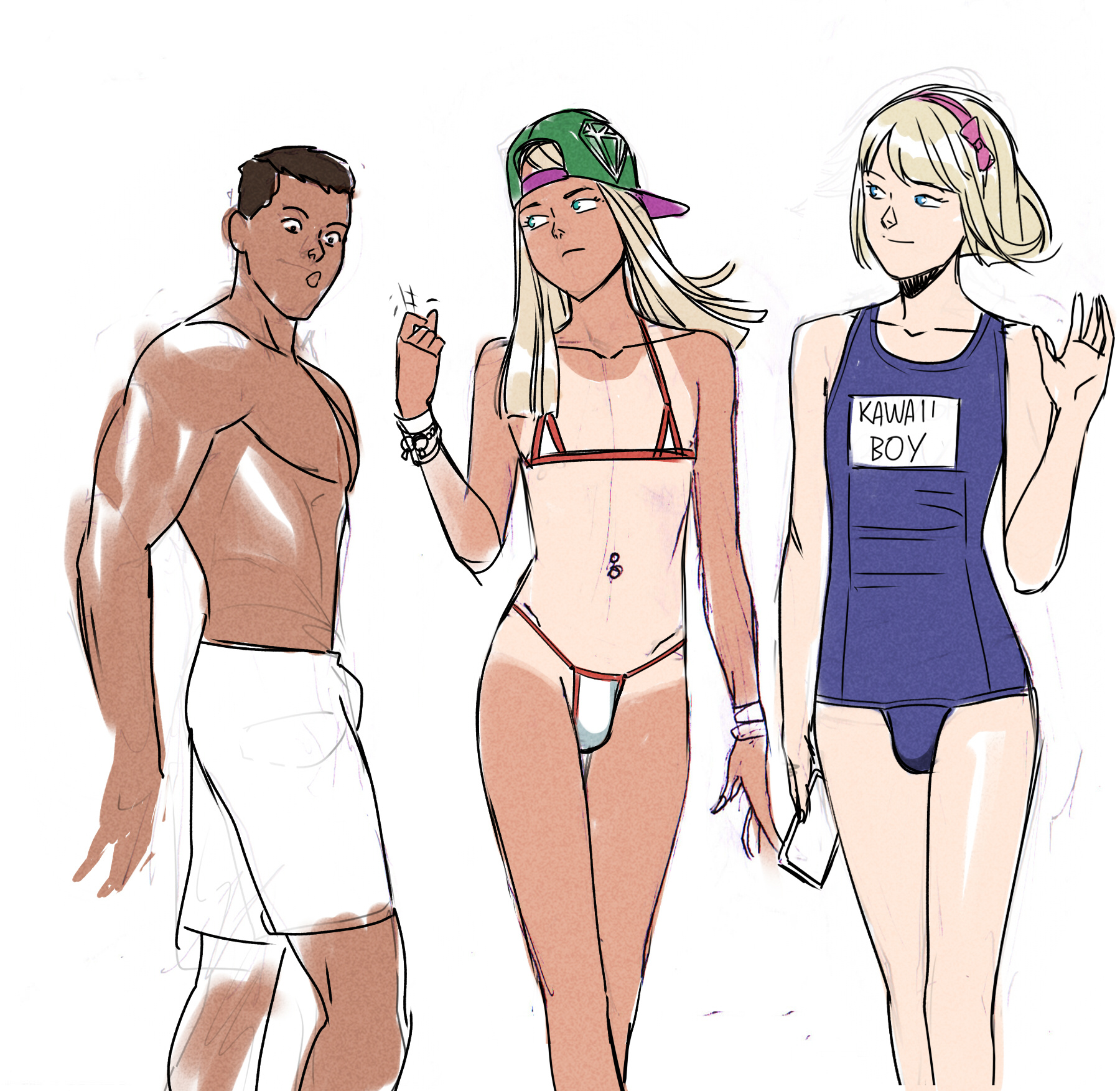 You are too dumbfounded to say anything because you have no idea what is happening. Chatter and laugher surounding you are deafening, countless hands grab you, your skin is splattered with cream, brushes tickle your face, a sticky substance cover your lips, you feel rags uncovering and covering your body.