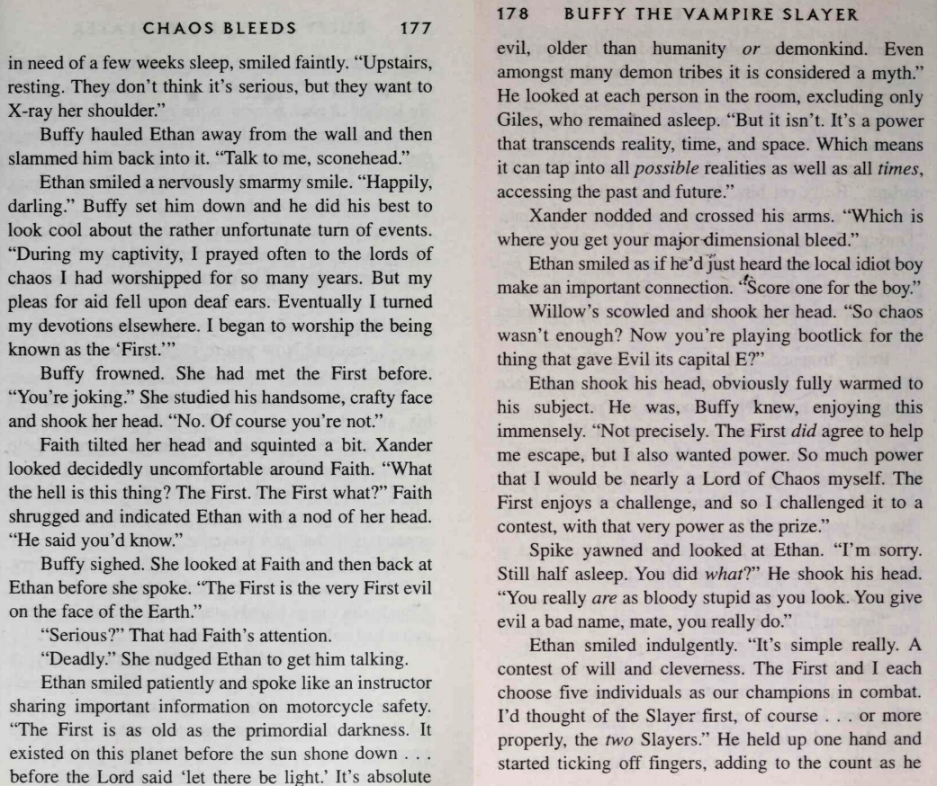 Breathing Gun is a Chekhov's gun and Buffy in the novels is explicitly said by an angel to be holy