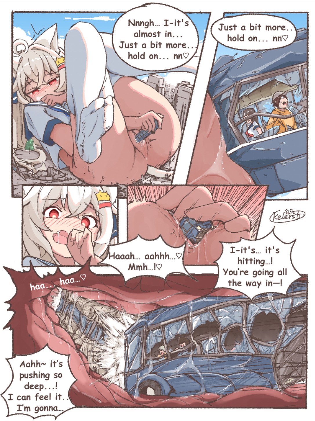 was there another bus inside her pussy? because in the bottom panel, it seems like the bus hit something. i thought it's a smear drawing to signify the bus being used for pleasure