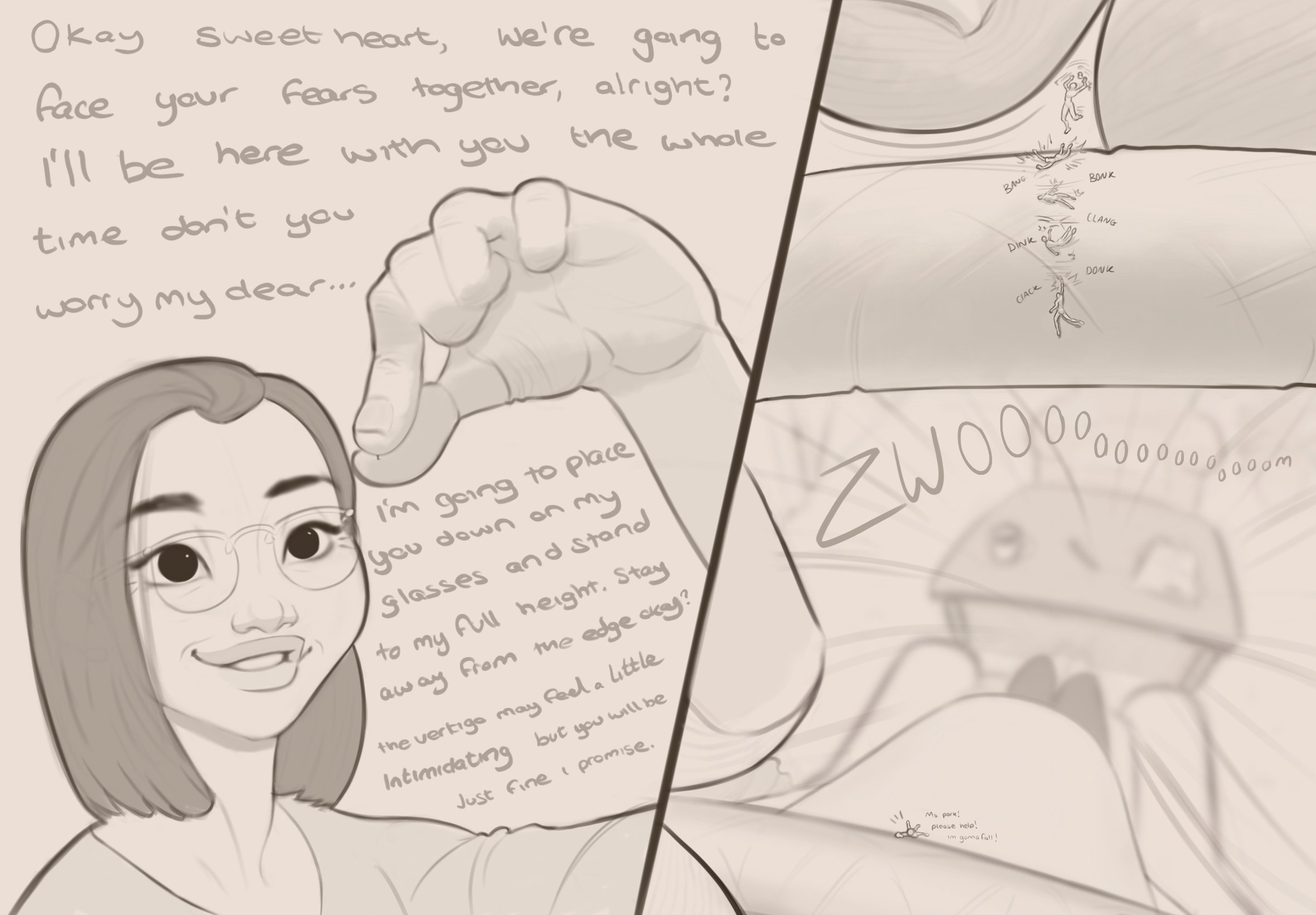God, I love the idea of a well-intentioned therapist trying to help you face your size-related fears, without realizing that she's only making them a thousand times worse in the process. The extreme size difference is just the icing on the cake.