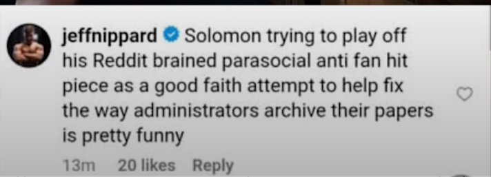 >says in jeff nipples video that he's an autistic datahoarder who goes as far as screen recording videos of comments just in case they got deleted years later