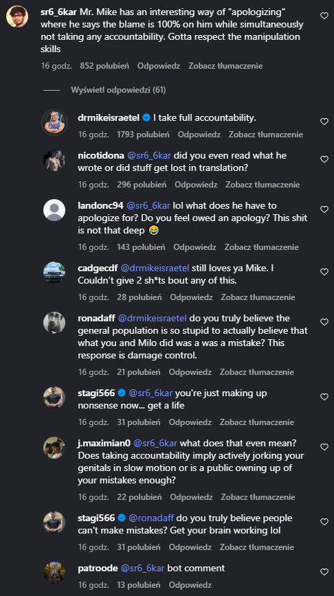 But the most likely scenario is that Mike and Nippard comments are filled with like 30% former fans and critique, and they maybe even make apology, but they continue to get views and money