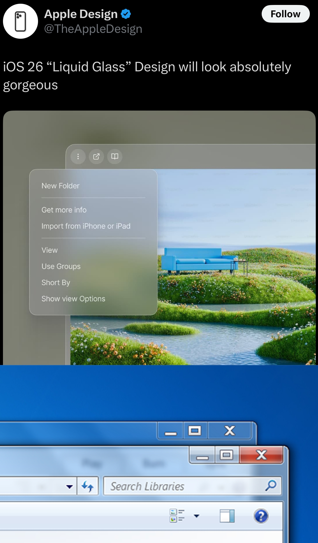 Y2K and the Memphis Design is cozy. Also when did we start saying Frutiger? I always thought of it just as Aero. To be honest, it wasn't my favourite. I thought it was generally too busy feeling and the performance could suffer on certain devices because of all the transparency and glass effects.