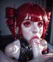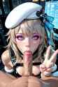 here's a prompt someone can use: candyland all around, rivers of chocolate, lolipop trees, biscuit pavement, blonde girl, cleopatra hairstyle, green eyes, wearing white lingerie and a white choker, blowjob, eyes looking up, at ejaculation she gags up... i dunno im just making shit up...