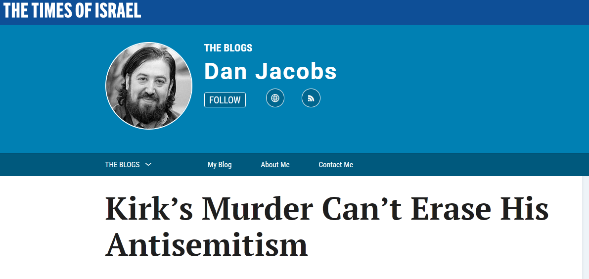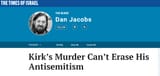 Jews loved Kirk though. He said and I quote "The world is a better place because of Israel".