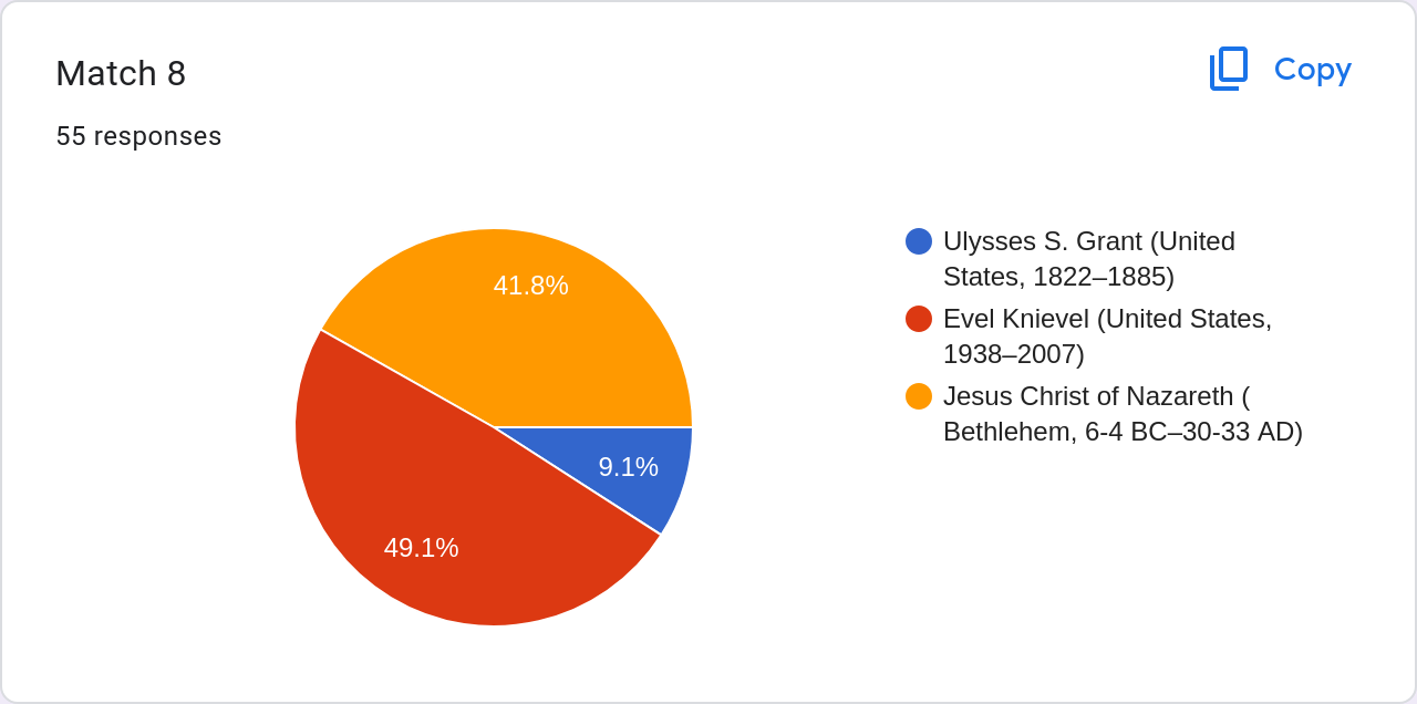 In all seriousness, I can't believe we got this far. Either way, I'll be satisfied with the winner.
