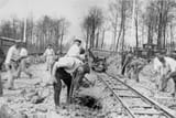 There are factories which grab chickens by their heads and carry them down a rail system into blades which cut their heads off. The entire dressing of the bird is automated. You could likely do this with jews if you were trying to. Force their heads into a double rail system right off the train, perhaps on a hill, and have them fed by gravity down into the blades which do the dirty work.