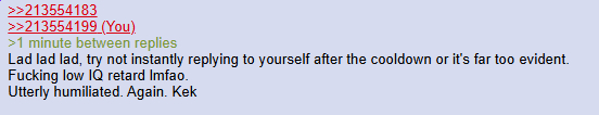 Lad lad lad, try not instantly replying to yourself after the cooldown or it's far too evident.