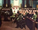 The head of Poland Józef Piłsudski died on May 12, 1935. His funeral was made few days later in Warsaw. But in Berlin there was a service for Piłsudski ordered by Adolf Hitler. In the picture you can see Adolf Hilter during the service for Piłsudski and a symbolic coffin with a Polish flag and eagle. This was the only time that Führer attended a Catholic mass as a leader of the German Reich and probably one of the last times when he was even in a church.