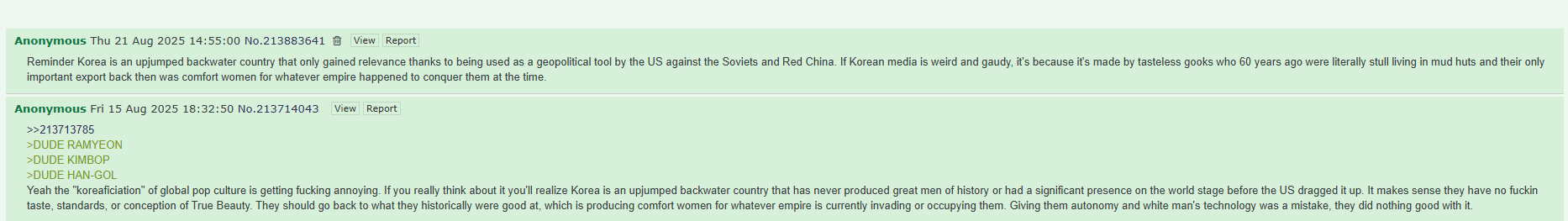 I just hate Koreans. I've been in relationships with a few Korean women and holy shit you're worthless as a people, even compared to the island cannibals on one side of my family that were civilized by the other side.