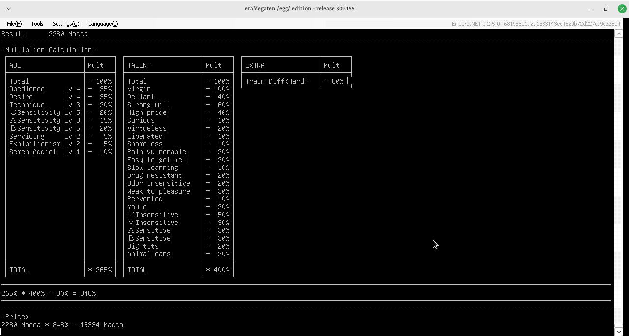 eraMegaten — Dungeon crawler based on the Shin Megami Tensei series, with tons of characters from other series (Fate, Touhou, Madoka, etc) included.