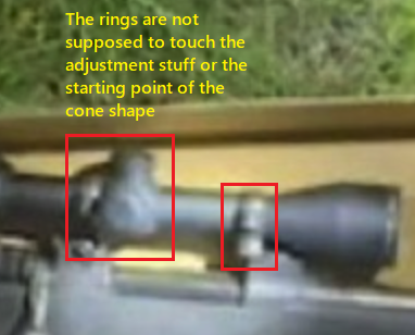 More to rear see how scope turret hits the back ring, like an old grandpa would of used what he had to make it work