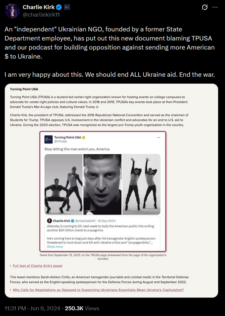 in addition to speaking against the actions of predominantly Jewish-owned and -led globalist organizations that robustly fuel, fund, and support immigration, anti-law enforcement, and pro-trans cultural degeneracy in America. Charlie Kirk identified them by name, spoke out against them, and encouraged his mostly under-age-40 following of millions to also do so.