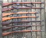 I see Mosin M1891, Mauser M1893, Swiss K1931, Mauser M1898, Gewehr M1888, Mannlicher M1895 and I think Kropatschek M1886.
