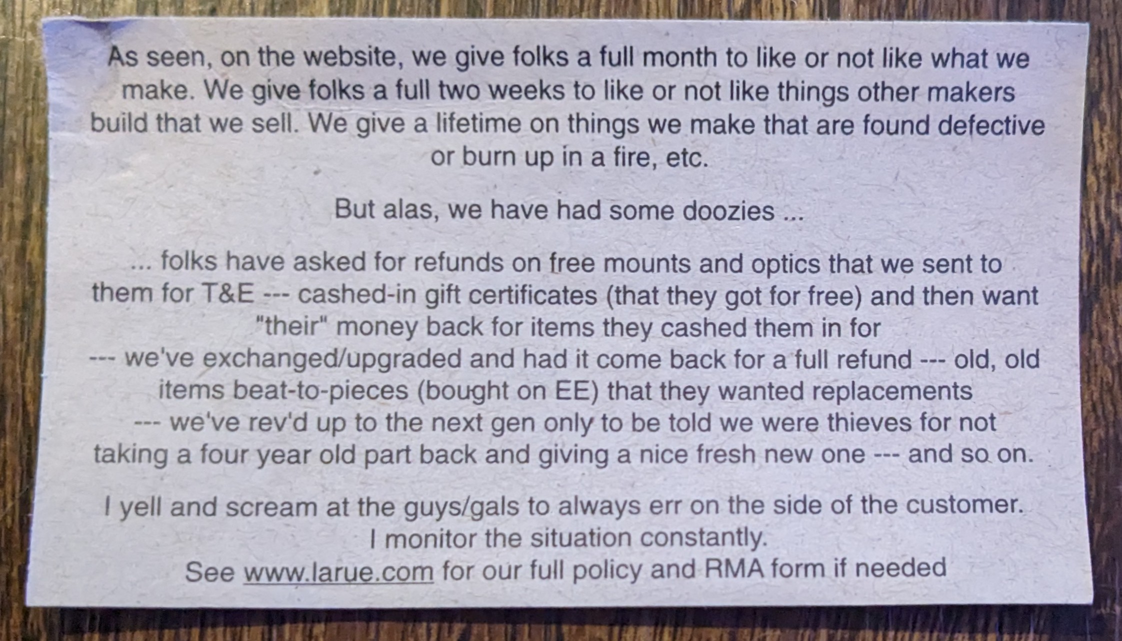 warranties are for lemons not for getting free work on your gun forever