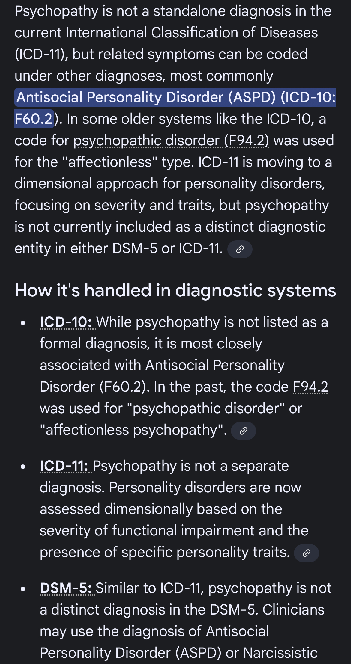 what's the icd code for psychopathy?
